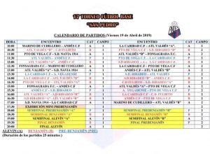 Un total de 22 Equipos pertenecientes a 10 Clubes de Asturias y Galicia, con cerca de 300 jugadores, participarán en el XVII Torneo San Pedro de Fútbol Base de las categorías Alevín, Benjamín y Prebenjamín que se celebrará en el campo San Pedro, el 19 de Abril, Día de Viernes Santo organizado por el Andés CF. La hora de comienzo será las 10 de la mañana. Escuchamos a Luis Martínez (Coordinador del Torneo) El Calendario de partidos es el siguiente: