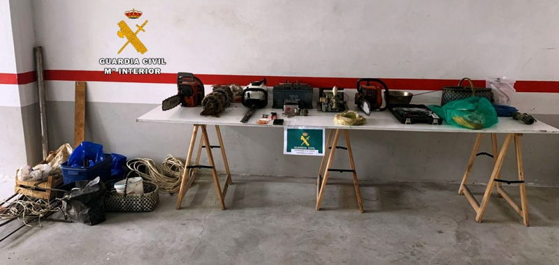 caminos. El vehículo (sin ocupantes) tenía las puertas cerradas sin los seguros activados y, en la parte trasera del mismo, los asientos abatidos y numerosos objetos del tipo chatarra. A unos dos metros del vehículo, los agentes localizan entre la maleza dos motosierras y un cortasetos.