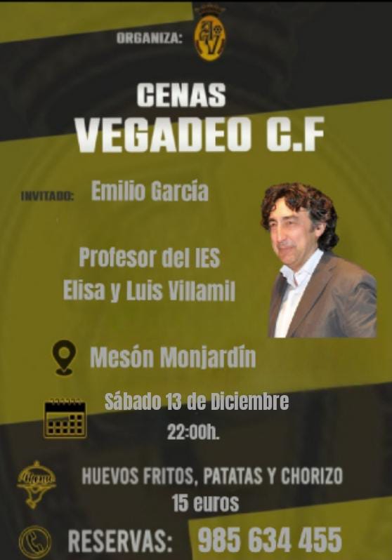 Emilio García Profesor del IES Elisa y Luis Villamil será el Invitado Especial en la Cena del Vegadeo CF de este Sábado.