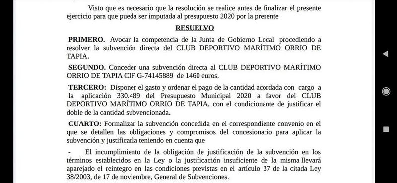 El Ayuntamiento de Tapia destina una subvención de 1.460 euros al CD Orrio