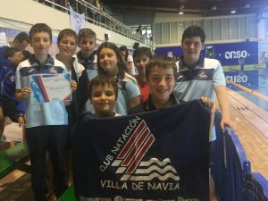 Los nadadores alevines del Villa de Navia participaron durante el pasado fin de semana en el I Campeonato de Asturias de su categoría celebrado en las instalaciones del Club Natación Santa Olaya. Sus resultados fueron los siguientes: Rubén Alba 19° en 200 libre y 5° en 200 mariposa, Marcos Fernández 12° en 200 espalda y 10° en 400 estilos, Martín Blanco 15° en 200 espalda y Daniela Perez 8ª en 100 y 3ª en 200 braza. Durante los prolegómenos del campeonato Rubén García recogió el diploma que le acredita como 4° clasificado en los Juegos Deportivos del Principado de Asturias entre los nadadores nacidos en 2007.