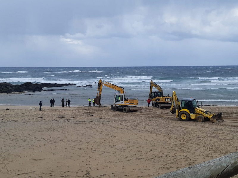 Finalmente, el dispositivo que se puso en marcha a primera hora de la tarde en la playa de Serantes (Tapia de Casariego) para recuperar el cadáver del rorcual boreal varado desde la tarde de ayer viernes, consiguió echarlo a tierra, empleando maquinaria pesada.