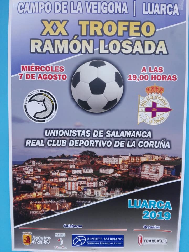 El próximo miércoles, a las 19 horas, en el campo de La Veigona de Luarca el Deportivo de la Coruña y el Unionistas de Salamanca disputarán el XX Trofeo Ramón Losada. Este será el penúltimo partido de pretemporada antes del Teresa Herrera el sábado 10 de agosto en Riazor ante el Real Betis. El conjunto deportivista ya lleva jugados cuatro amistosos con los siguientes resultados: Miércoles 24 de julio: Ciudad Deportiva de Abegondo, Deportivo 2 (Christian Santos y Mujaid) – Fabril 0