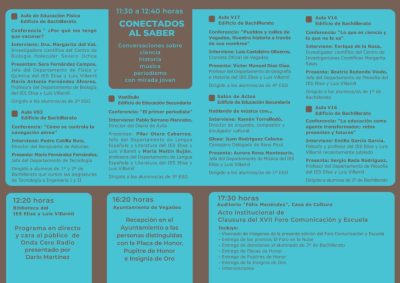 El XVII Foro Comunicación y Escuela del IES Elisa y Luis Villamil de Vegadeo quedará clausurado el jueves, 27 de noviembre, con diversas actividades, como la tradicional entrega de Placas de Honor o Pupitres de Honor del Foro o la Insignia de Oro del mismo.