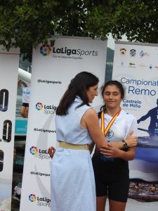 El próximo domingo, a las 17 horas, en el Auditorio Municipal tendrá lugar el Homenaje que rendirá el Ayuntamiento de San Tirso de Abres a los remeros santirseños que formando parte del Club Remeros del Eo (Vegadeo) consiguieron Tres Medallas y Un Cuarto Puesto en los Campeonatos de España de Remo Olímpico. Los homenajeados serán: Antonio Mediante y Gerardo Glez. Alzú (Campeones de España en 2X Cadete), Laura Glez. Alzú (Subcampeona de España) en Skiff Alevín Femenino y Julia Córdoba (4ª en Skiff Cadete Femenino). Previamente el sábado 27, a las 12:30 horas, se realizará una Ruta Guiada para todas las edades y gratuita de una hora y media de duración por los principales monumentos del centro del pueblo con salida de la Casona de Amaido. En la imagen Laura González Alzú recibiendo la medalla de plata de manos de la castropolense Asunción Loriente (Pdta. de la Federación Española de Remo), en el pasado Campeonato de España disputado en Castrelo do Miño.