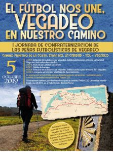 Las cuatro Peñas Futbolísticas de Vegadeo (Sporting, R. Oviedo, Real Madrid y Barcelona) celebrarán el sábado 5 de octubre su I Jornada de Confraternización, realizando la etapa nº 12 del Camino Primitivo de La Costa La Caridad-Tol y Vegadeo. A la finalización habrá una Comida de Hermandad en el Recinto Ferial.