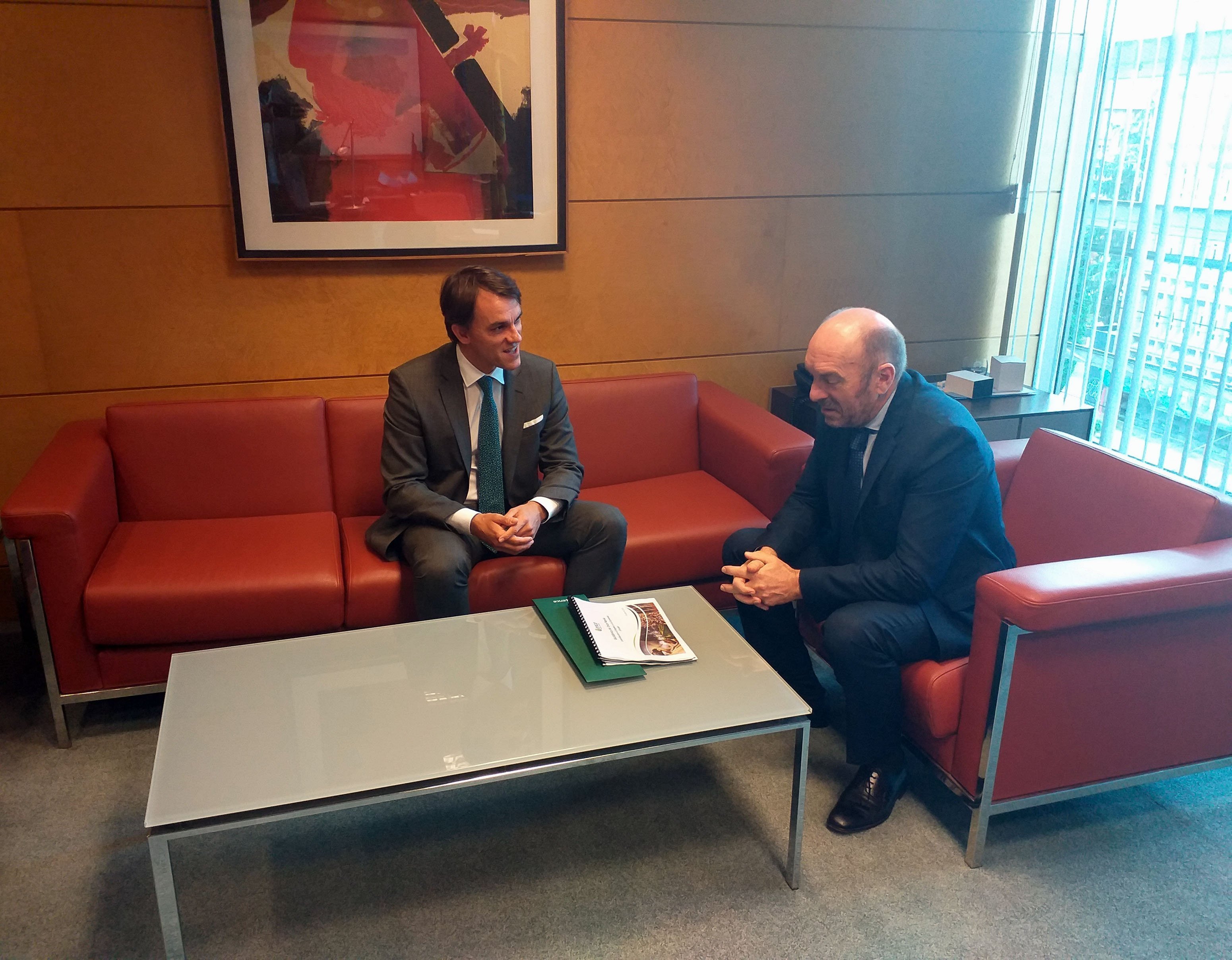 El vicepresidente y consejero de Infraestructuras, Medio Ambiente y Cambio Climático, Juan Cofiño, se ha reunido este miércoles con el director general de Ence, Jordi Aguiló, quien ha recordado que la parada de producción que comenzó en la factoría de Navia este 1 de octubre permitirá completar el proyecto de ampliación denominado “Navia 80”. Esta actuación supone la mejora de la práctica totalidad de los procesos industriales de la planta.
