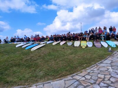 La Comunidad Surfera de Tapia celebró el pasado sábado en la playa tapiega una Quedada Surfera en Honor a Toño Alonso fallecido hace algunos meses. El acto comenzó con las intervenciones de familiares, surfistas y alcaldesa y se colocó una placa en su memoria en el monolito que recuerda a Peter Gulley. Posteriormente los surferos participantes entraban en el agua para hacer la ofrenda floral y el homenaje. Toño el del Moderno, como era conocido, fue uno de los pioneros del surf en Tapia siguiendo la estela de los hermanos australianos.