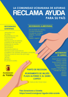 El ayuntamiento de Valdés recoge hasta el 18 de marzo, en coordinación con Cruz Roja, bienes de primera necesitad, que se deberán depositar en la casa consistorial. Y como espacio para acoger a los refugiados estarían, por ejemplo,las dependencias del antiguo conservatorio de música de Luarca.