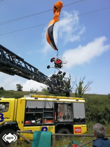 Efectivos de Bomberos del Servicio de Emergencias del Principado de Asturias (SEPA) con base en el parque de Avilés han rescatado ileso a un parapentista a motor, que quedó enganchado en unos cables de una línea de alta tensión, a unos cuatro metros del suelo, en Tamón, Carreño. El hombre, se encontraba en perfecto estado y no precisó traslado sanitario. Hasta el lugar el Servicio de Atención Médica Urgente (SAMU) había enviado el equipo de Atención Primaria de Luanco y la ambulancia de soporte vital básico de la zona. Mientras los técnicos de la compañía eléctrica verificaban que se había cortado el suministro los bomberos colocaron la autobomba urbana ligera debajo del afectado para proteger una posible caída encima mientras les confirmaban que se había cortado el suministro. Encima del vehículo colocaron unas colchonetas para amortiguar el impacto si se produjese. Una vez que los técnicos de la empresa eléctrica les confirmaron que podían proceder, con la autoescalera, rescataron al afectado. El Centro de Coordinación de Emergencias del 112 Asturias recibió el aviso a las 12.32 horas. La llamada la realizaba una persona que vio al parapentista y estaba donde él. Indicó que se encontraba bien pero estaba enganchado a unos 4 metros. Al lugar solo había acceso para camiones pequeños. La Sala 112 del SEPA pasó el aviso al SAMU y activó una dotación de bombero del parque avilesino. Además comunicó lo sucedido a la Guardia Civil y a los responsables del suministro eléctrico que envió a sus técnicos a la zona. Finalizada la intervención retiraron del lugar para regresar a su base donde llegaron a las 14.42 horas.