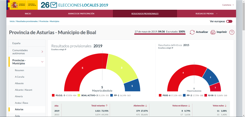 Boal: 5 concejales Psoe, 3 concejales Boal Activo y 1 concejal PP