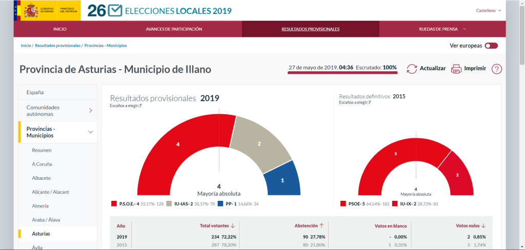 Illano: 4 concejales Psoe, 2 concejales IU, 1 concejal PP
