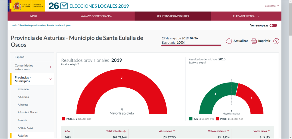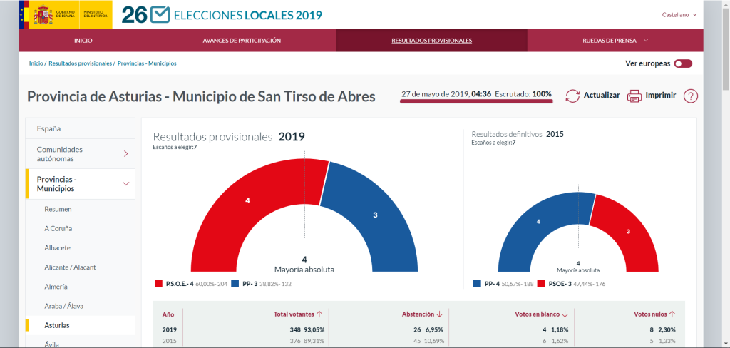 Cambiará de gobierno, porque ha conseguido mayoría absoluta, el ayuntamiento de San Tirso de Abres (donde gobernaba el PP, ahora lo hará el Psoe).