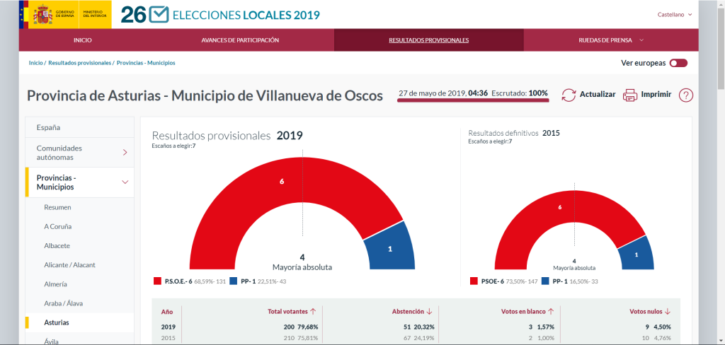 Villanueva de Oscos: 6 concejales Psoe, 1 concejal PP