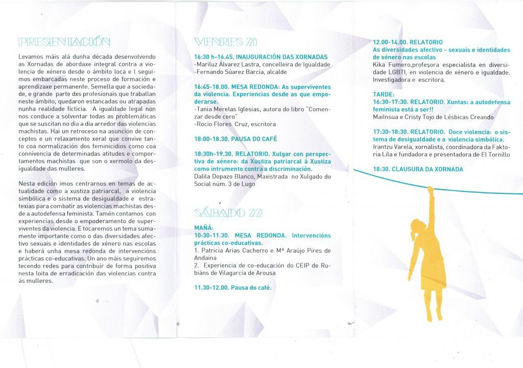 El Teatro de Ribadeo acogerá los días 21 y 22 de septiembre, las XI Jornadas de Abordaje Integral de la Violencia de Género en el Ámbito Local. Las Jornadas abordarán, a través de diversas ponencias, asuntos como «Juzgar con perspectiva de xénero», «Las diversidades afectivo-sexuales e identidades de género en las escuelas» o «El sistema de desigualdad y violencia simbólica». ADemdás, habrá actividades lúdicas para niños y niñas en una carpa al lado del Teatro. Luisa González, la responsable del Centro de Información a la Mujer de Ribadeo da cuenta de los asuntos a tratar.