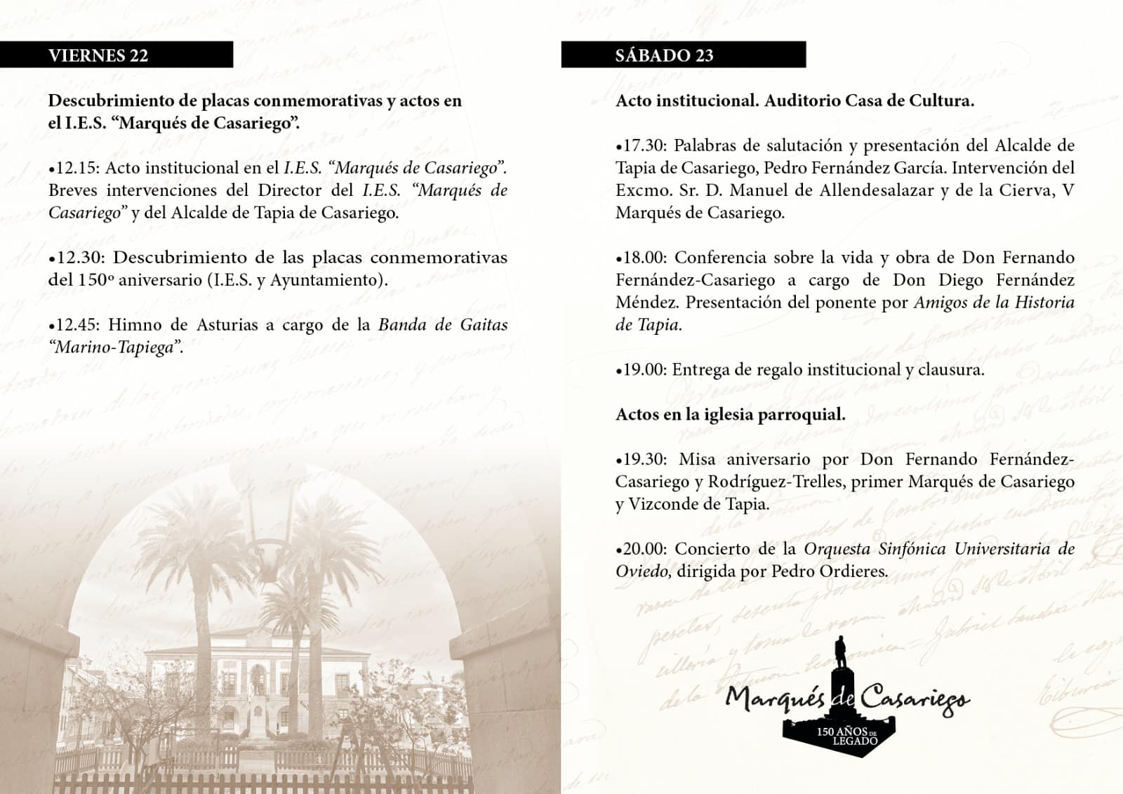 Tapia recuerda al Marqués de Casariego con motivo del 150 aniversario de su fallecimiento