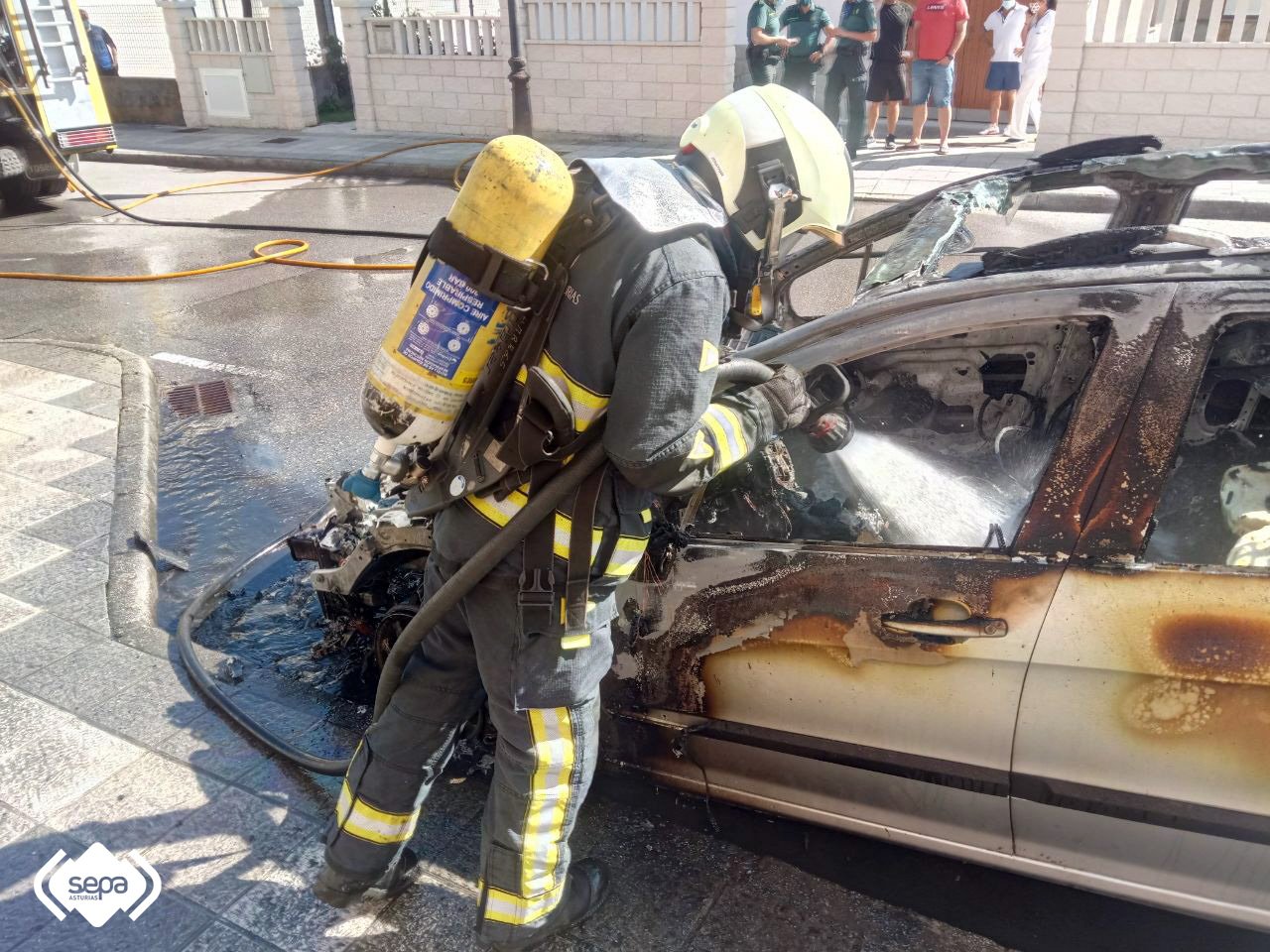 Un incendio calcina un turismo en una calle de Tapia