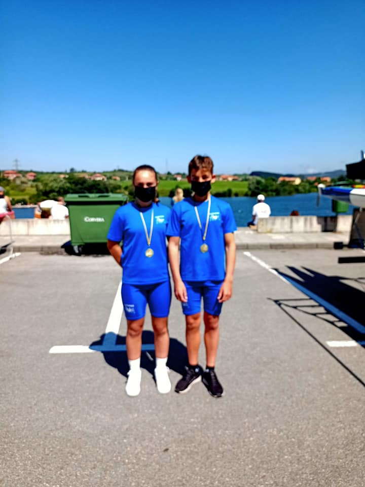 El K-2 Mixto Infantil del Club Piragüismo Albiones, Campeón de Asturias de Barcos de Equipo