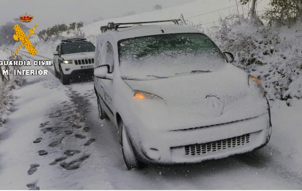 La Guardia Civil presta auxilio en Valdés a un vehículo atrapado en la nieve