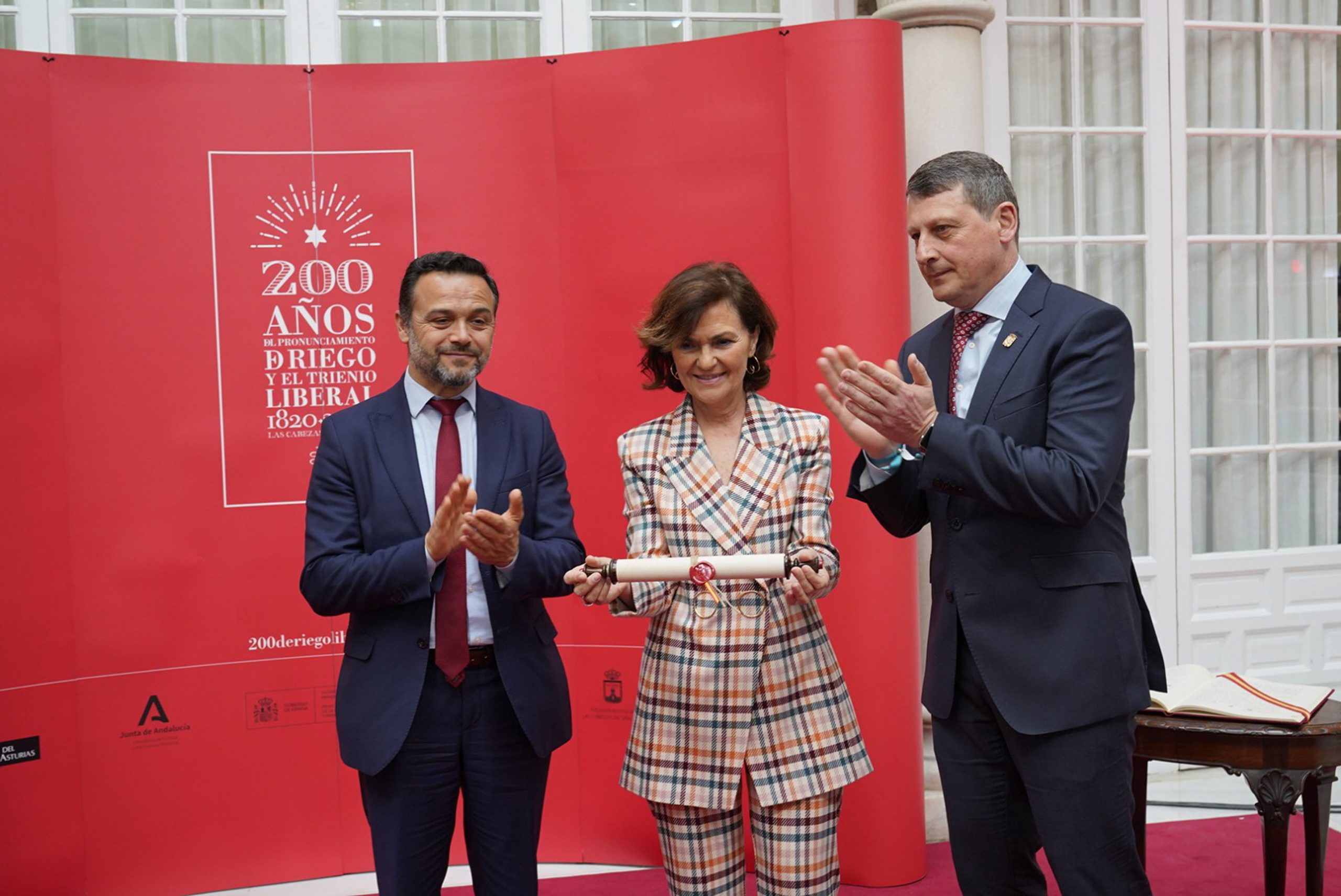 El Alcalde de Tineo con la Vicepresidenta del Gobierno de España en la Presentación del Bicentenario de Riego