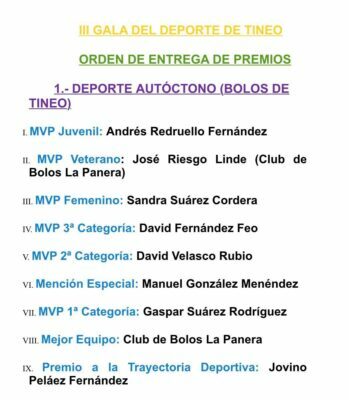 Tineo celebró su III Gala del Deporte, presidida por el alcalde de Tineo, José Ramón Feito y el concejal de Deportes, Noe García.