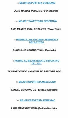 En la misma se ha reconocido además de la trayectoria, los éxitos cosechados en 2021 por diferentes deportistas a nivel individual en diversas disciplinas y también por varias entidades deportivas del municipio.