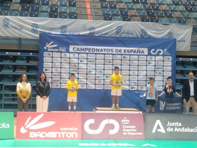 El Club Bádminton Vegadeo logró Tres Títulos de Campeones de España y Dos Subcampeonatos en el Nacional Sub-11 y Sub-19 disputado durante este fin de semana en el Palacio de Deportes Carolina Marín de Huelva. Mateo Amor se proclamó Campeón de España en Individual Masculino Sub-11, Joel Alonso y Mateo Amor lograban el oro en Dobles Masculino Sub-11 y Joel Alonso y su compañera Eva Lemos (Ponteareas) se hacían con el oro en Dobles Mixto Sub-11. Joel Alonso también logró el Subcampeonato en Individual Masculino Sub-11 y Mateo Amor y Vega López (Leganés) lograban la plata en Dobles Mixto Sub-11. Por tanto Mateo y Joel Alonso fueron dobles Campeones de España Sub-11. Resultados históricos para el Club Bádminton Vegadeo y el Deporte Veigueño y Asturiano.