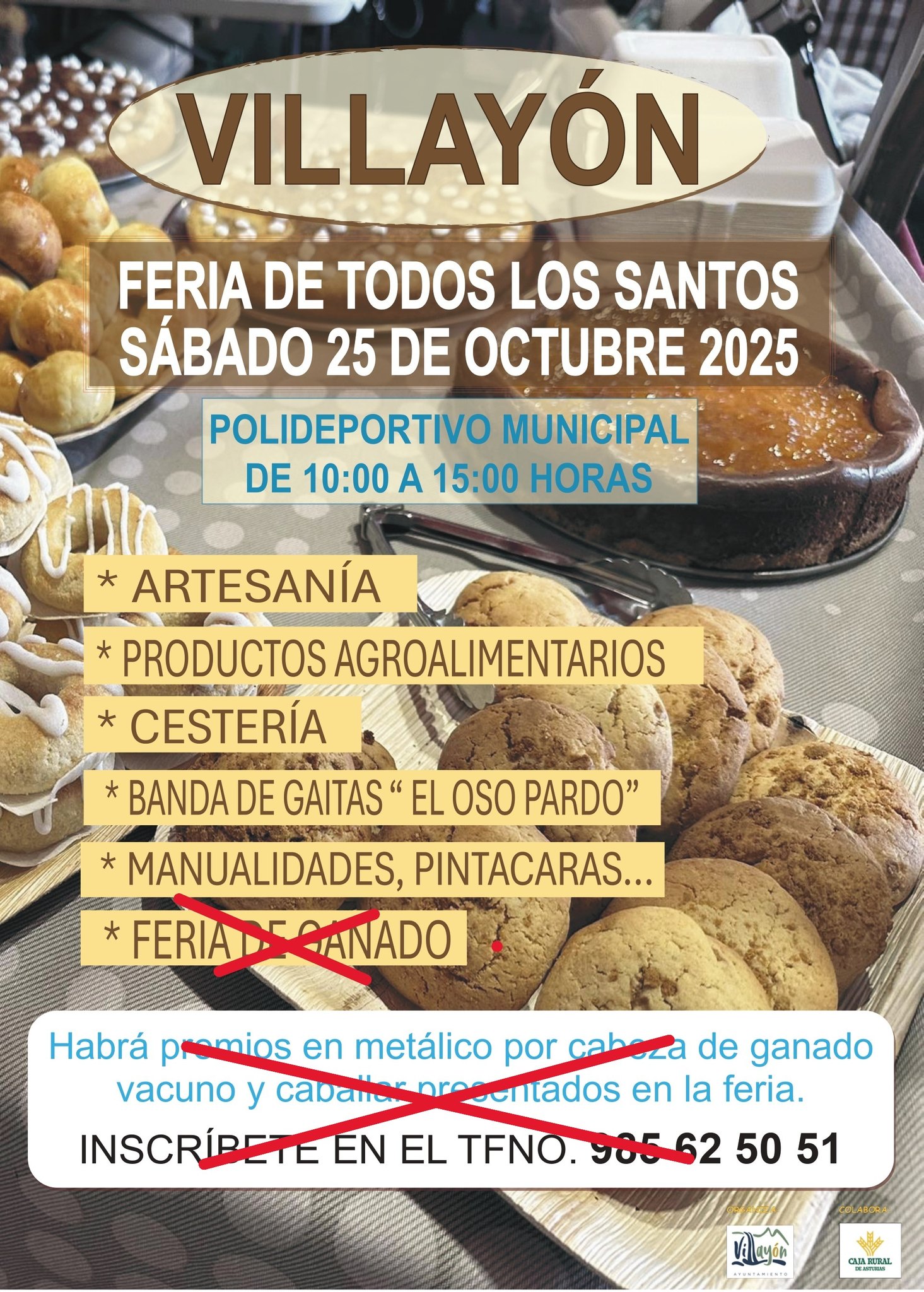 El polideportivo de Villayón acogerá mañana, sábado, la tradicional Feria de Todos los Santos en Villayón, aunque en esta ocasión, sin presencia de ganado, ante las restricciones que están en vigor, consensuada entre el gobierno autonómico y los sindicatos agrarios, como medida preventiva ante los casos dermatosis nodular bovina localizados en Cataluña. Pero sí habrá exhibición y venta de productos agroalimentarios, talleres de artesanos en vivo, gaitas, pintacaras…