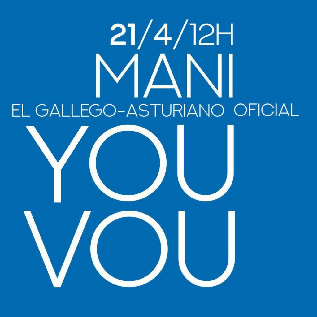 A Plataforma Pola Oficialidá del Gallego Asturiano volve a fer úa chamada pá ir a Oviedo este sábado, 21 d´abril, á esa manifestación convocada pa pedir a oficialidá del asturiano y del gallego-asturiano. Tamén se fexo un manifiesto, dirixío a os particulares, asociacióis y clubes deportivos, pá pidir el oficialidá, como «reconocemento llegal del dereto que ten cualquera persona a usar llibremente a llingua propia. En Asturias temos dúas llinguas propias, el asturiano y el gallego-asturiano, y os sous falantes nun tein reconocido llegalmente ese dereto. Nun entendemos por qué se dá esa situación de desigualdá en comparanza cos falantes d’outras llinguas noutras comunidades. Por eso pedimos el mesmo trato institucional y el mesmo réxime de protección: el oficialidá».